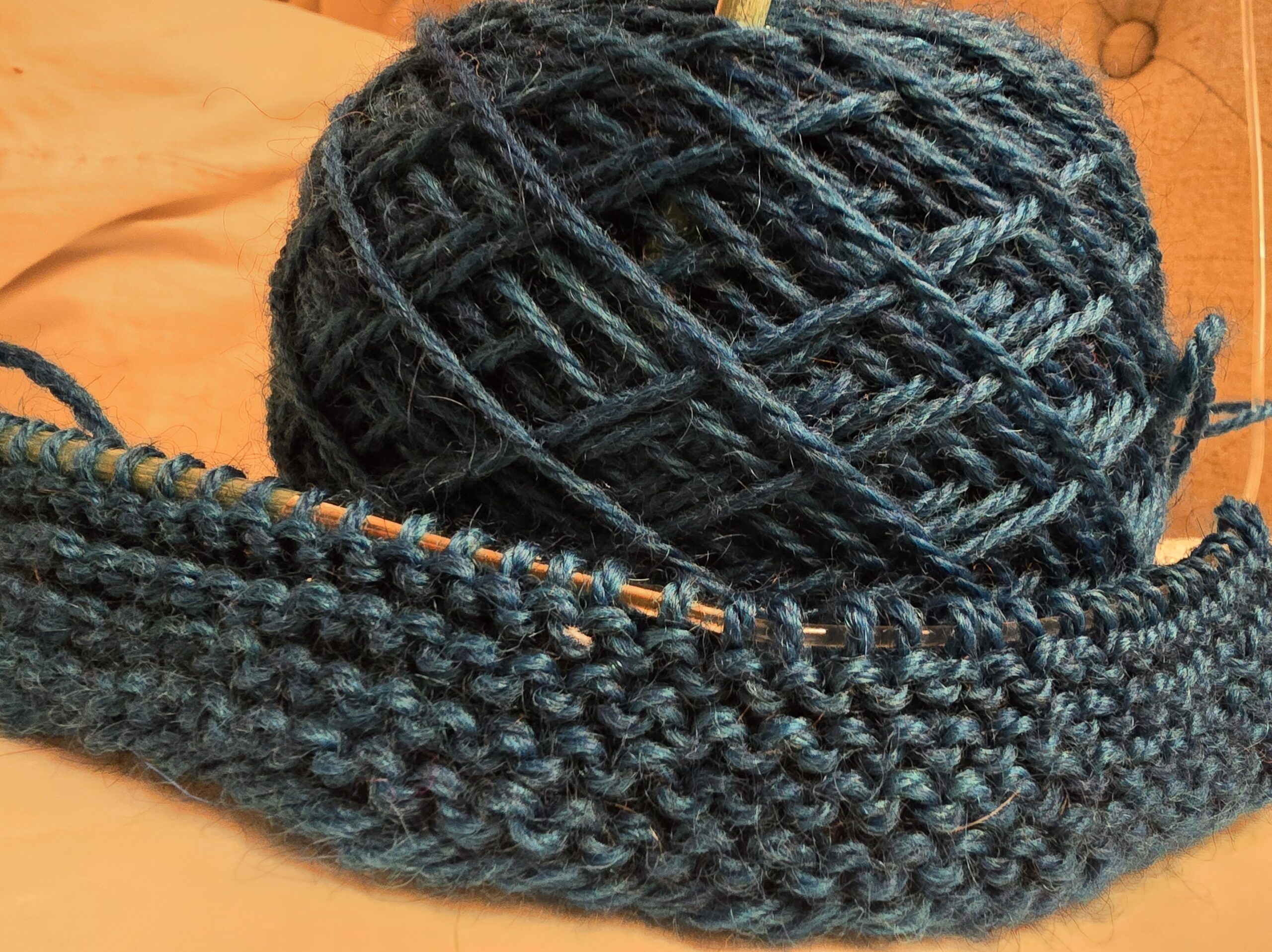 Immediately after my first knitting class, I purchased this beautiful blue, super bulky, 100% merino wool yarn made by Malabrigo,